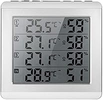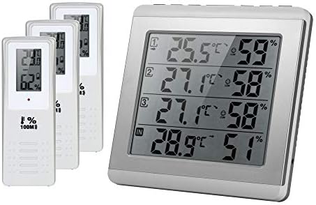 ميزان حرارة كيه مون المرطب مقياس الحرارة اللاسلكي Lcd الرقمي في الأماكن المغلقة الخارجية المرطب بأربع قنوات جهاز قياس رطوبة درجة الحرارة مع 3 أجهزة بث خارجية مستوى الراحة Amazon Ae