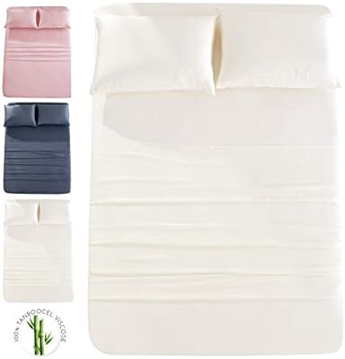 أوراق ليوسيل من جومو أوراق تبريد للعرق الليلي مجموعة سرير مستدامة لا تسبب الحساسية بجودة الفنادق أوراق ليوسيل من الخيزران 4 قطع من الخيزران ليوسيل عاجي Queen Amazon Ae