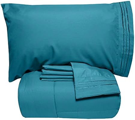طقم ملاءات سرير 5 قطع فاخر بلون موحد من سويت هوم كوليكشن كامل اكوا تيل Twin Xl Amazon Ae