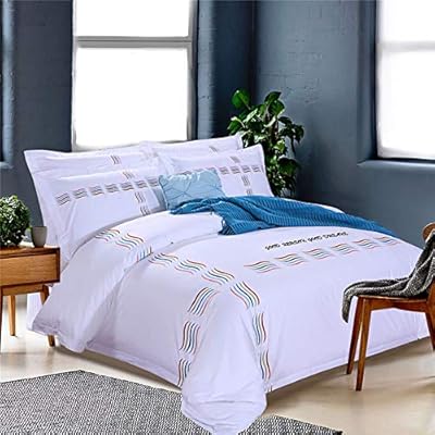 طقم مفروشات سرير مطرز من القطن بنسبة 100 تتضمن مجموعة ملاءات السرير غطاء اللحاف أكياس الوسادة بدون لحاف Amazon Ae