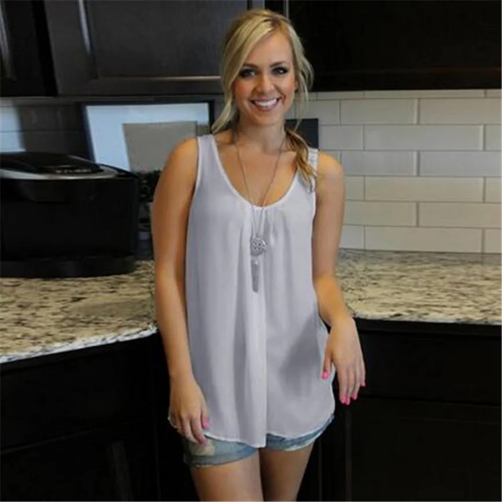 بلوزة صيفية ملابس منزلية مريحة ومجانية بدون أكمام بلوزات نسائية فضفاضة بيضاء شيفون غير رسمية يوصى بها مدونون Instagram Aliexpress