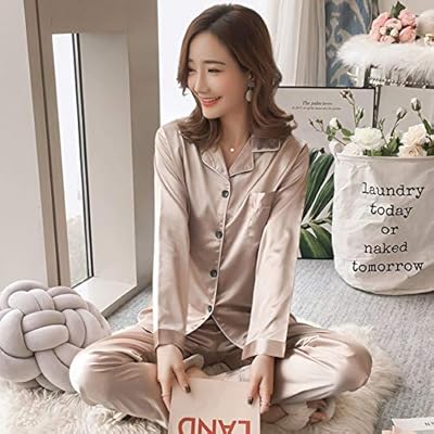 Fdba النساء منامات مجموعات جميل ارتداء المنزل كم طويل الحرير بيجامة مريحة فضفاضة ترفيه فتاة ملابس نوم مجموعات بيجامة Amazon Ae
