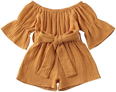 كل يوم دافئ ارتداء طفل طفل طفل بنات بنين قبالة الكتف كشكش القوس رومبير ملابس طفل الصيف ملابس مريحة المنزل 2 3 Years اصفر Amazon Ae