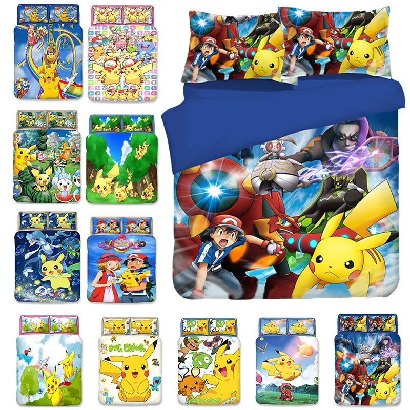 صفقة بيكاتشو بوكيمون 3d طقم سرير أغطية لحاف سادات الكرتون أنيمي البوكيمون مجاميع راحة الفراش أغطية أغطية سرير رخيص