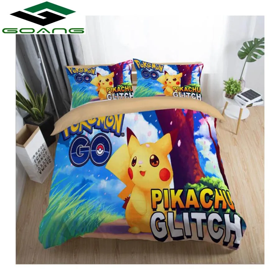 صفقة Goang طقم سرير 3d الطباعة الرقمية الكرتون بيكاتشو غطاء سرير لحاف غطاء وسادة 3 قطعة فرش أطفال مجموعة المنزل المنسوجات بوكيمون جديد