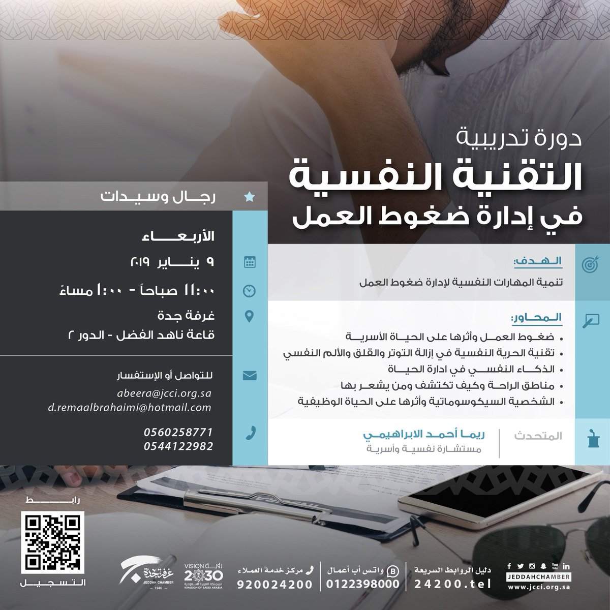 غـ ـرفـ ـة جـ ـد ة On Twitter دورة تدريبية التقنية النفسية في إدارة ضغوط العمل الأربعاء 9 يناير 2019م بالمبنى الرئيسي لـ غرفة جدة يمكنكم التسجيل من خلال الرابط