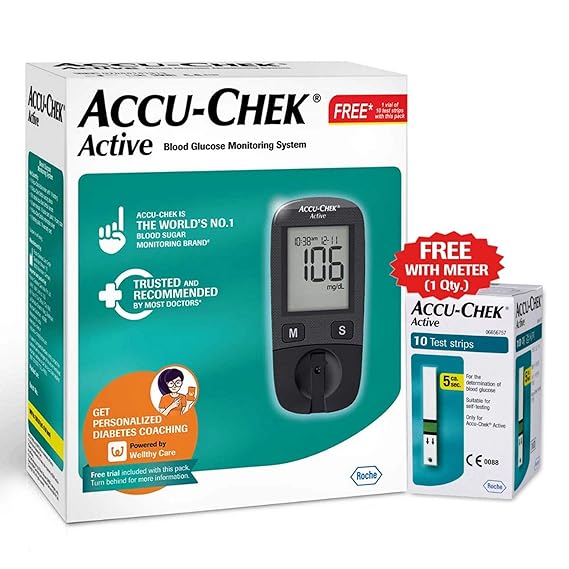 Accu Chek Active Blood Glucose Meter Kit Vial Of 10 Strips Free Multicolor Amazon In Health Personal Care