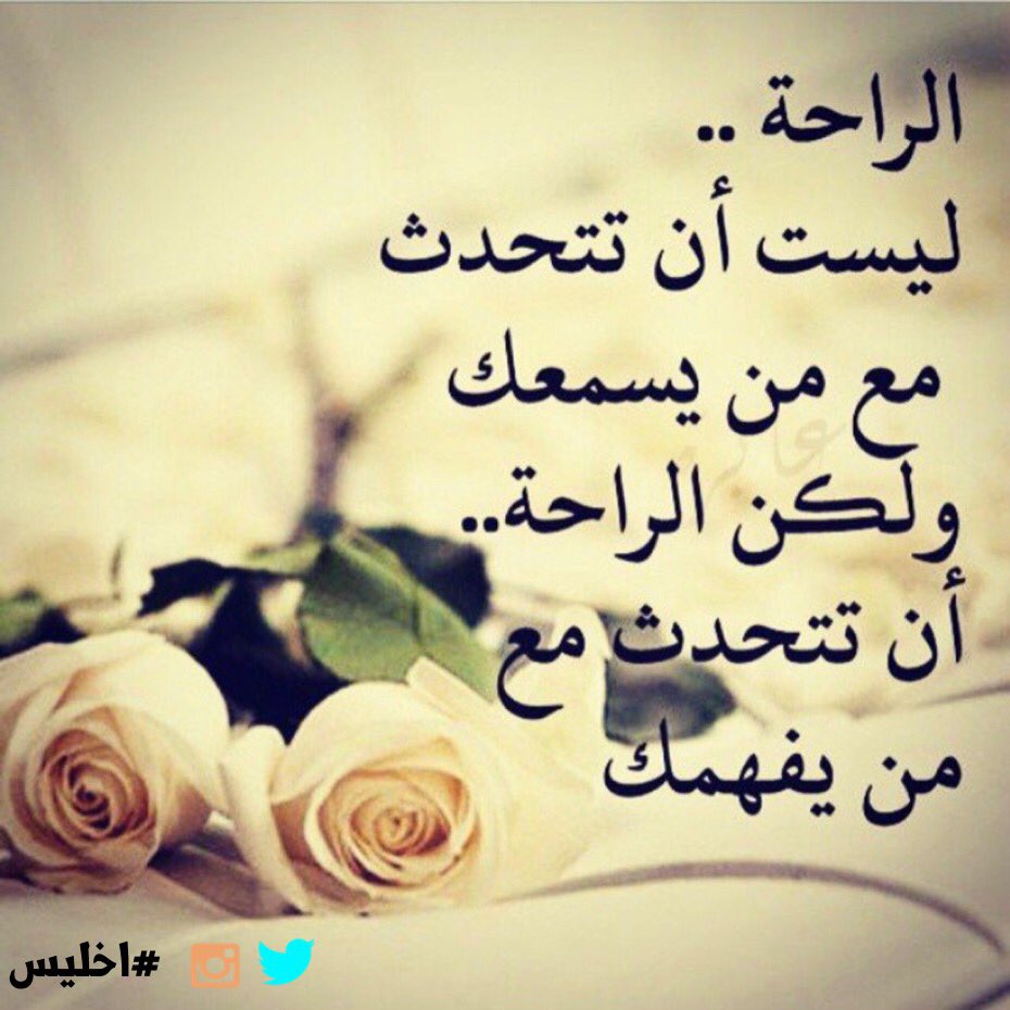 O Xrhsths خالد السلمان Sto Twitter الراحة ليس أن تتحدث مع من يسمعك ولكن الراحة أن تتحدث مع من يفهمك اخليس علمتني المواقف ان اسباب السعاده تكون Https T Co Vefpxe69yo