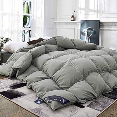 لحاف مبطن مناسب لجميع المواسم مع حشوة من الأوز لا تسبب الحساسية مبطن جيد التهوية فاخر منفوش مع أشرطة جانبية رمادي 150x200cm Amazon Ae