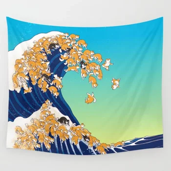 شيبا Inu في موجة كبيرة مفرش منقوش غطاء حائط الفن ستارة بطانية ورقة نافذة الستار الأثاث الراحة المفروشات Leather Bag