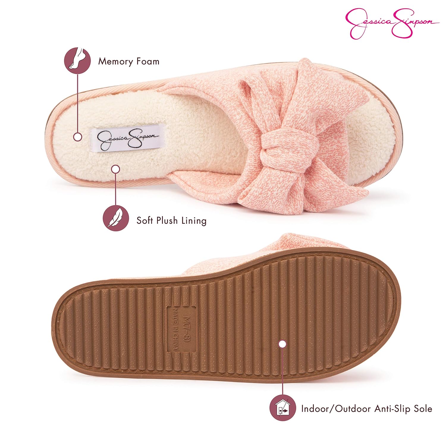 شباشب حريمي من Jessica Simpson بنسيج ناعم مع نعل داخلي داخلي خارجي Small Amazon Ae