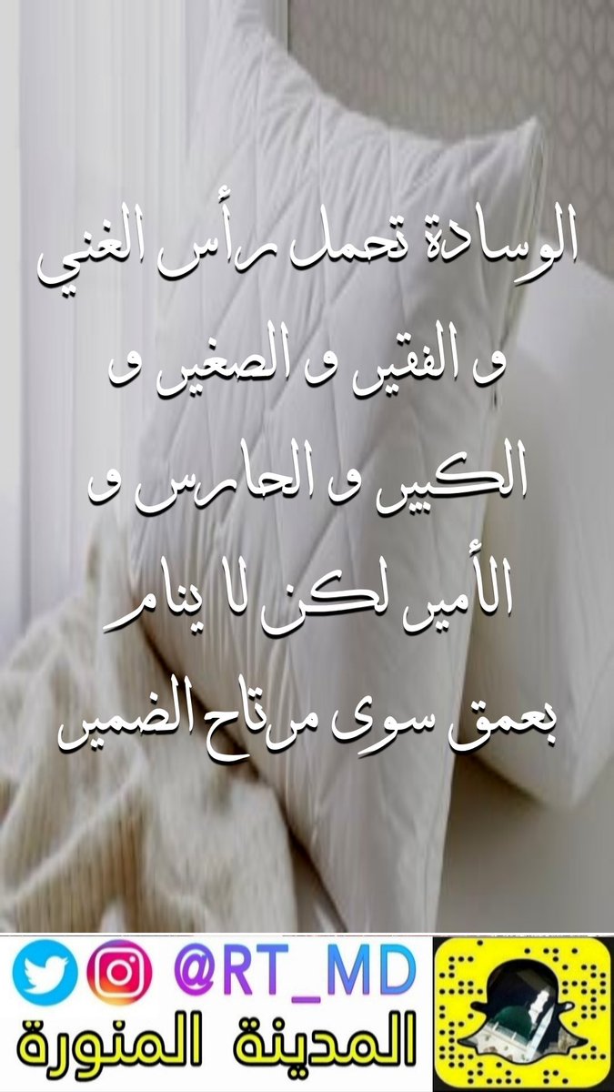 نوف على تويتر الوسادة تحمل رأس الغني و الفقير و الصغير و الكبير و الحارس و الأمير لكن لا ينام بعمق سوى مرتاح الضمير حكمة ريتويت المدينه Https T Co 0uj7r5vvvo