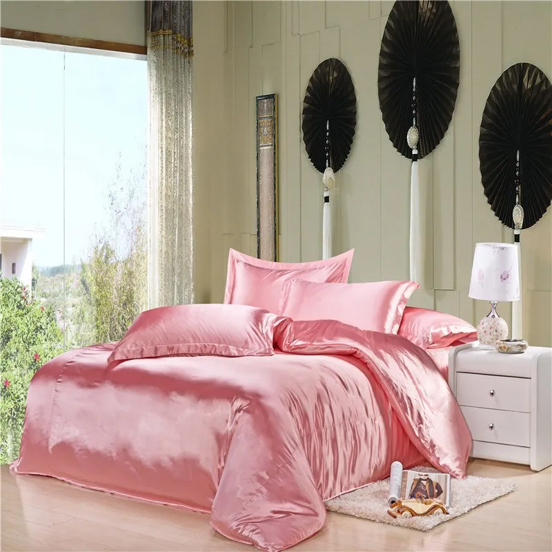 2017 الفاخرة وردي فاتح لحاف حرير الفراش الصينية لحاف حرير أغطية لحاف طاقم غرفة نوم 4 قطعة تقليد الحرير الملكة المجهزة ورقة أطقم سرير Bed Set Duvet Beddingchinese Silk Duvet Aliexpress