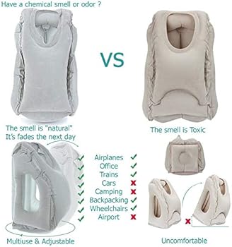 وسادة سفر للسفر وسادة مريحة ممتازة وقابلة للنفخ وسادة مريحة وقابلة للحمل تصميم للطائرات السيارات الحافلات القطارات والقيلولة المكتبية التخييم في الهواء الطلق رمادي Amazon Ae