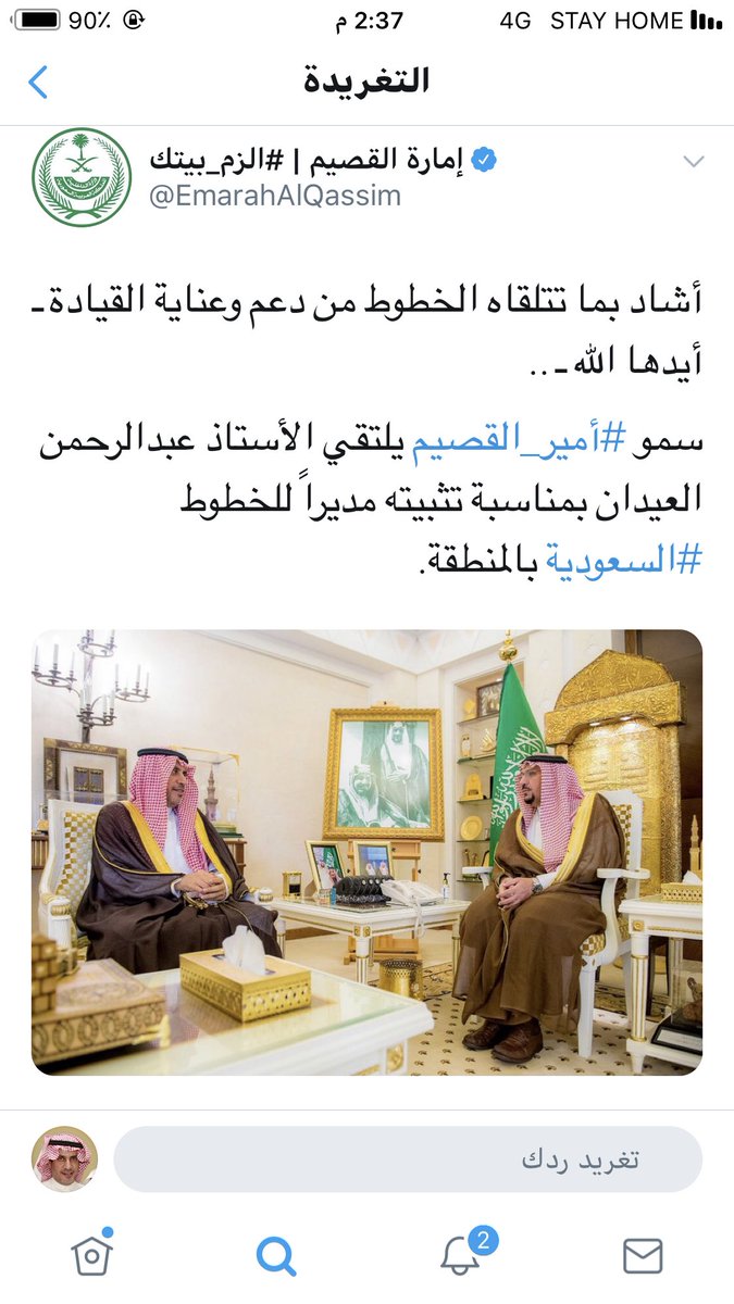 عبدالرحمن العيدان On Twitter تشرفت بالسلام على صاحب السمو الملكي الأمير الدكتور فيصل بن مشعل بن سعود بن عبدالعزيز أمير منطقة القصيم حفظه الله بمناسبة صدور الموافقه على تثبيتي مديرا للخطوط السعوديه
