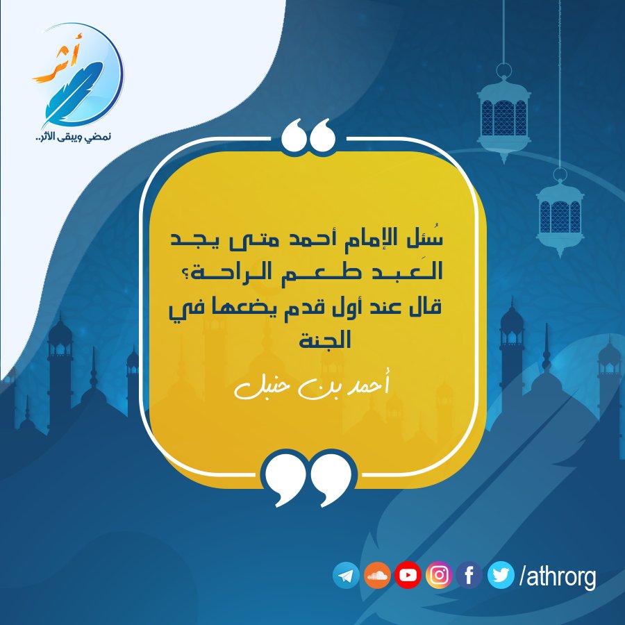 أثر Athr Twitterissa سئل الإمام أحمد بن حنبل رحمه الله متى يجد العبد طعم الراحة فقال عند أول قدم يضعها في الجن ة أثر نمضي ويبقي الأثر Https T Co Msdrlnxxbe